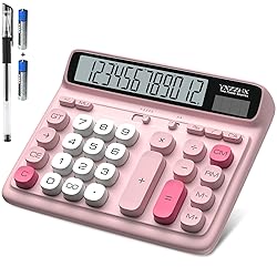 Desktop Calculator with Extra Large 5-Inch LCD Display, 12-Digit Two Way Power Solar & Battery Office Calculator with Big Buttons for Business, Accounting & Home Use(Pink)