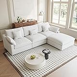 Sdorens Modular Sectional Sofa Cloud Couch, 119.29" L Shaped Couch with Chaise Ottoman, Linen Blend Fabric Minimalist Deep Seat Couches for Living Room, Sofa Covers Washable&Removable, White
