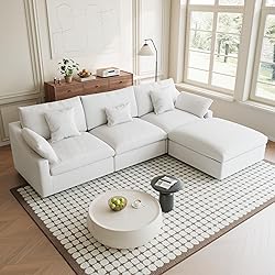 【High-quality Fabric】The cloud sofa is made of high-quality linen blend fabric, which is comfortable, breathable, wear-resistant and durable, providing long-term comfortable use, pet friendly couch. 【Sturdy Wooden Frame】Our sectional sofa features a durable wooden frame structure, ensuring stability and long-lasting use. The hidden seat connecting buckle securely link each seat, preventing shifting and maintaining the overall aesthetic of the living room sofa. The interior is filled with sponge and down, providing you with a cloud-like sitting and lying experience. Whether for a lazy afternoon nap or a cozy family gathering, cloud sofa offers ultimate comfort and relaxation. 【Removable & Washable】The modular couch covers are detachable and easy to clean, making daily maintenance and cleaning hassle-free. This helps keep your sectional couch fresh and tidy, prolonging its lifespan. 【Modular Sofa】This modern modular sectional sofa has a modular design, with each seat able to be used individually or freely combined according to your space requirements. Whether it's a spacious living room or a small space, it effortlessly fits in, allowing to adapt to any home space layout. 【Easy Assembly】Overall size of the l shape sofa is 119.29"L x 77.95"W x 29.53"H, legs height is 1.96 inches. The sectional sofa requires partial assembly, but we provide a detailed instruction manual to ensure even beginners can easily complete the setup.
