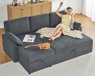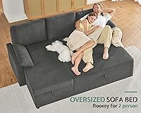 Easy Bed Conversion: Quickly convert your pull out sofa into a comfortable bed with one smooth motion, ideal for hosting guests or creating extra sleeping spacein your living room. Built-In Storage: The chaise features a spacious compartment, great for storing blankets, pillows, or essentials, keeping your sleeper couch area organized. Flexible Seating: This convertible sofa bed is great for lounging, watching TV, or entertaining guests, making it a functional couch for homes, offices, or dorms. Soft & Breathable Linen Fabric: The breathable linen fabric enhances comfort and durability, offering a soft touch while preventing pilling and ensuring long-lasting quality. Build to Last: This sofa sleeper features a sturdy steel and wood frame, ensuring durability and reliable support. High-density foam cushions enhance comfort, making it ideal for everyday use.