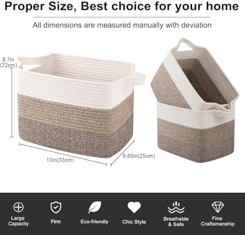 - High Quality Cotton Rope Woven: Woven cotton thread is very soft and don't damage your floors and furniture. Seamless design, not easy to tear,More firm than rattan and plastic materials. Our storage basket has no harsh chemiacls added, and the cotton rope basket is safe for kids, elders and pets. Firm enough and stylish enough to go anywhere in the home