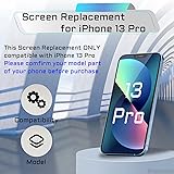 【Compatible Model】The screen replacement ONLY Compatible with iPhone 13 Pro 6.1", Model: A2483 A2636 A2638 A2639 A2640. Please check your cell phone model number before purchasing this item. 【Pre-Installed Earpiece】The upgraded screen includes a pre-attached front Proximity Sensor and Ambient Light Sensor. Note that Face ID won’t work with this screen—it’s built for your original ear speaker flex cable. To keep Face ID, trasfer your old flex cable to the new one we provide. 【Top-Grade Screen】This 6.1-inch screen replacement for iPhone 13pro is crafted from high-quality glass. Made of ultra-thin, scratch-resistant tempered glass, it matches the original’s performance when installed right. 【Complete Tool Set】We offer a full repair kit with tools. The magnetic pad organizes screws during screen assembly, reducing the risk of losing parts. This all-in-one kit fixes a cracked, scratched, or broken 13pro screen quickly, easily, and affordably. 【Guided Setup Process】Pay attention to the install order: start with the screen cable, then the earpiece cable. Ignoring this may lead to screen issues like dimming or unresponsiveness. We include a step-by-step video for a fast, easy setup. Contact us if problems arise during install or use.