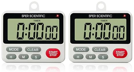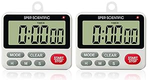 Sper Scientific 24-Hour Digital Lab + Kitchen Timer with LED Light 810001 - Precision Countdown Timer with Large Display, Loud Alarm & Clock Mode - for Cooking, Lab Experiments & More - 2 pc