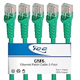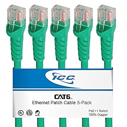 ICC CAT6 Ethernet Patch Cord 10 FT 5-Pack, UTP 24 AWG UL Listed, PoE++, 100% Stranded Copper Snagless Patch Cable for Patch Panel to Network Switch for Data Center, Office, and Home, 10 Feet Green