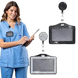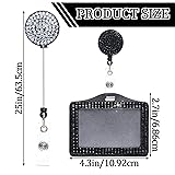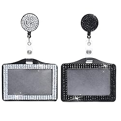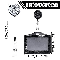 Package Includes: Our Shiny Badge Holder Set contains 2 horizontal badge holders, each embellished with sparkling rhinestones. Available in classic black and white, these ID holders for badges are suitable for everyday use and replacement needs Sturdy Materials: Made of durable PU, metal, and plastic, these shiny badge holders are built to last. Not only are the horizontal badge holders reliable, but they are also waterproof, ensuring your ID cards remain safe and secure. The secure materials make these name badge holders a long-lasting accessory Convenient Size: The horizontal ID holder measures 4.3x2.7 inches, which fits standard ID cards, making it easy to carry and use. The retractable badge reel accessory can be extended up to 25 inches, allowing you to easily access your ID card without removing it from the holder. The exquisite design adds a touch of elegance to your professional attire Wide Applications: These horizontal badge holders are suitable for a variety of occasions, suitable for nurses, teachers, office staff, and more. Whether you are in the office or attending a business event, these name card holders provide you with an elegant and practical way to display your ID card Exquisite design: The rhinestone ID card holder is inlaid with a circle of resin diamonds, which is sparkling and eye-catching, adding beauty and charm to the card holder; such a design can attract people's eyes, attract people's attention, and leave a deep impression