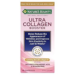 - Nature’s Bounty Optimal Solutions Ultra Collagen Booster is a targeted healthy-aging supplement designed to support healthy, youthful skin from the inside out.(1) As we age, our body’s natural collagen production decreases, which can lead to a loss of skin elasticity and the appearance of wrinkles. This collagen supplement features a clinically studied collagen complex which helps boost your body’s collagen production.(1) This advanced formula features resveratrol and grape seed extract, plus a blend of vital nutrients, including collagen, hyaluronic acid and chondroitin, that work together to support your skin's health and vitality. (1) Nature’s Bounty Optimal Solutions Ultra Collagen Booster from the #1 Brand for Hair Skin and Nails (2) has a clinically studied ingredient that helps improve skin elasticity and reduces wrinkles in 12 weeks. (1) Take control of your beauty from within and nourish your skin with Nature’s Bounty Optimal Solutions Ultra Collagen Booster.(1) Whether you’re looking to reduce wrinkles or enhance your skin's elasticity, this is the collagen supplement you need for younger, healthier-looking skin.(1) Trust the brand that's been a leader in hair, skin & nails for years and see the results for yourself. (1). Adults: Take two capsules daily, preferably with a meal.