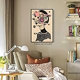 Surreal Woman Canvas Wall Art, Cool Grid Addiction Girl Poster, Unique Feminine Art Print, Abstract Fine Art Painting, Contemporary Surrealism Picture for Living Room Bedroom 8x12in Unframed