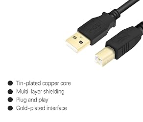 High-speed multi-shielded USB 2.0 A-Male to B-Male cable Compatible with Connects mice, keyboards, and speed-critical devices, such as external hard drives, printers, and cameras to a computer Full 2.0 USB capability with 480 Mbps transfer speed Corrosion-resistant, gold-plated connectors for optimal signal clarity and shielding to protect against noise, minimizing interference for a clear signal 30 Days Refund - 24 Months Exchange. We are friendl Customer Support Experts