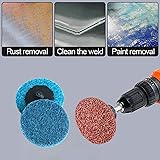 - SpecificationDisc diameter:3"Shank diameter:1/4"Blue : fine abrasive discs, appr 400-600 GritRed : medium abrasive discs, appr 150 GritBrown : coarse abrasive discs, appr 120GritFeaturesSurface conditioning sanding disc, 1/4" shank fits most power drills, die grinders, air grinders and other power tools.Aluminum Oxide Abrasive Discs are good choice for metalworking to fulfill cleaning, finishing, blending and deburring applications.Quick Change Discs are widely used to the metal polishing such as shipbuilding, repairer, aviation, machinery; and metal parts processing such as automotive, motorcycle sheet metal coating, medical equipment parts, etc.With good grinding effect, our Roll on Sanding Discs can quickly remove gasket materials, surface oxidation, light rust and coatings on various metals or plastic, fiberglass.