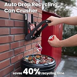 ✅ Smart Auto-Drop System-Experience true hands-free recycling – crushed cans automatically fall into your trash bin, eliminating messy pickup (Patent Pending Technology) ✅ROCK-SOLID CONSTRUCTION - Say goodbye to flimsy can crushers! Our crusher is built like a tank with high carbon steel, reinforced rivets, and sturdy bolts that keep the handle secure. This bad boy is built to last! ✅SPACE-SAVER DESIGN - Mount our can crusher on the wall above your trash can for convenient access. Easily install it on any wall with the included screws and anchors. Perfect for the kitchen, garage, or even the garden terrace! ✅CRUSHES IT ALL - Don't waste time searching for the perfect can crusher! Our crusher handles all aluminum soda, pop, beer cans and plastic bottles. For use with standard 8~16oz aluminum can, Reduce them to compact ~1 inch thick pieces in a flash! ✅STRESS-RELEASING WORKOUT - Crush cans and your stress at the same time! Make record-breaking gains on your biceps and grip strength while feeling ultra zen about saving space in your recycling bin and making the planet proud!