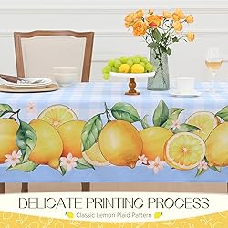 Cute & Vivid Design: Our beautifully crafted summer tablecloth features classic and beautiful checkered pattern, original lemons and leaves, creating a joyful touch to your holiday dining setting. Premium Material: Made of 100% premium polyester fabric, the Romanstile tablecloth feels soft to the touch and is free from any harsh chemical odors. The material is durable enough to protect your table from damage and spills. Size Guide: Each package includes 1 piece of tablecloth measuring 60 W by 84 L inch. The tablecloth size is usually larger than your table size, please check out our size guide to find the right size for your needs. Multiple Uses: Our summer tablecloth is perfect for your holiday decorations including spring dinners, holiday gatherings, summer parties, picnic, cafe, and other indoor and outdoor activities. It's a fun and festive addition to all your special occasions. SUPER EASY TO CARE: Machine washable at low temperature; Tumble dry on low; Wrinkle free after iron on low temperature; DO NOT BLEACH. Please don't hesitate to contact us if you have any questions.