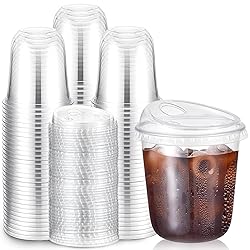 Sufficient Quantity: you will get 100 sets of plastic coffee cups with sip lids, including 100 strawless lids and 100 12oz PET plastic cups, which are abundant in quantity to meet your daily use and party use needs, suitable for various beverages such as iced coffee, iced tea, smoothies, juices, etc;Due to the manufacturing process, the actual capacity of the product may be smaller,if you mind, please purchase with caution Strawless Straw Lid Design: our coffee cups come with a strawless lid, which has a comfortable straw hole so you can enjoy your drink anytime, anywhere; The clear cups features a splash proof rim and flip top design, strawless lid fits snugly with the coffee cup to prevent leaks and spills U Shaped Design: our plastic cup with lid adopts U shaped design, and the rounded appearance makes it more comfortable to hold; Use these clear PET cups to hold coffee or drinks, which is more fashionable and elegant, enhancing your drinking experience; The bottom of the cup is made of thickened material, so there is no need to worry about the cup tipping over Safe and Reliable Material: our clear plastic cups with lids are made of quality PET plastic, safe and healthy, sturdy and durable, not easy to break; These disposable clear cups with lids are easy to use, clear in appearance, elegant and beautiful, ideal for events, parties, cafes and daily use Wide Application: our clear cups with lids can hold a variety of drinks such as iced coffee, smoothies, soda, juice, milk or beer, and can also hold desserts such as parfaits and sundaes; Suitable for parties, picnics, barbecues, coffee shops, beverage shops, offices, restaurants, etc., whether it is party catering, commercial environments or home use, they are ideal choices