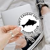 - This funny "Ain't Caught Shit Fishing Club" sticker is perfect for fishing enthusiasts who love humor. Made from high-quality waterproof vinyl, it’s durable and ideal for tackle boxes, coolers, boats, and cars. Whether you're a pro or just enjoy weekend fishing trips, this sticker adds personality to your gear. It makes a great gift for fishing buddies, dads, or anyone who enjoys a good laugh. Easy to apply and remove without residue, this sticker is perfect for any fishing adventure!