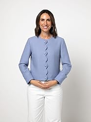 This is a fully lined jacket sewing pattern from Style Arc designed for woven fabrics. You will receive a paper sewing pattern with instructions with your purchase. This semi-fitted style has optional fray trim detailing on the hem pockets, neck and sleeve cuffs, an assortment of pocket styles, four front patch pockets, four front faux pocket flaps, and two large patch pockets with flaps. Make this versatile style in woven textured wool, boucle, linen/linen blend, velvet, or even sequins. Sizes 18-30 included. Each size is printed in a different colour. Style Arc's industry-based patterns are available for you to sew at home! Difficulty rating: Experienced Sewists. Check out Style Arc's up-to-the minute styles. Sewing patterns don't have to be boring! Remember, you can always get in touch with us or the super helpful Style Arc community if you need some pointers along the way while sewing your garment. Pattern pieces and basic instructions in English are included for this women's jacket sewing pattern. This sewing pattern was designed and printed in Australia.