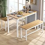 Tatub Dining Table Set for 4, 3-Piece Kitchen Table with 2 Benches, Space-Saving Dining Room Table Set for Breakfast Nook and Small Spaces, Original
