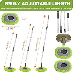 【Package Included】:This set contains: durable four stainless steel pipes, one mop head holder, 2 replaceable mop heads, which makes it easier for you to clean and replace the brush heads. it is especially suitable for daily use at home and can meet your various cleaning needs 【Innovative Design】:Hompoem 71.3" wall mop with extendable handle uses a non-slip sponge handle. the 15° curved handle is ergonomically designed, breaking the traditional straight rod design and reducing the height requirements when using the mop. it can easily clean ceilings, high cabinets and other higher areas, making your daily cleaning more efficient 【Adjustable Length and Flexible Rotation】:The 71.3-inch rotatable long handle design makes it easier to adjust the length to meet your requirements for different heights, the pole length can be adjusted from 47.44" to 71.3" as needed, cleaning high or low areas without the need for ladders or bending. In addition, the handle of this wall mop can rotate 105 degrees horizontally, making your cleaning process easier and faster 【Sturdy long metal handle】: Wall Cleaner Mop features a sturdy stainless steel handle,up to 71.3 inches long, lightweight and durable. easily reach high and low areas without bending or a ladder, and no need to worry about bending or breaking during use 【Wide Application】Hompoem wall mop has two uses, can be used dry or wet, has strong water absorption and release capabilities, and can clean walls, windows, ceilings, floors, cars, high cabinets and bathroom walls. it's a very good wall mop