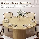 QHITTY Fluted Round Dining Table, 47-inch Wood Kitchen Table Table for 4, Farmhouse Circle Table with Strip Base for Kitchen, Living Room, Natural