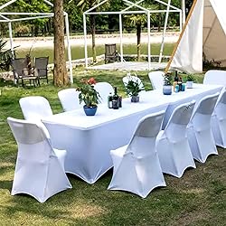 1.Spandex Stretch & Durability: Made with 90% polyester and 10% spandex, this stretch table cloth resists wrinkles and stains while stretching smoothly over your table.Reinforced corners ensure it lasts, whether you use it as a fitted tablecloth or a flexible table cover. 2.Suitable for 6ft Tables: Made to fit standard 6 - foot tables (72"L x 30"W), this stretch table cloth uses reinforced leg pockets to stay secure,no slipping. 3.Versatile for Many Occasion: Use this table cloth for everything from family dinners and birthday parties to festivals, weddings, anniversaries, buffet setups, graduation parties, and banquets.It's also perfect as a stretch table cloth for craft shows, jewelry displays, trade shows, or hotel receptions. 4.Simple Cleaning Routine: Keep your spandex table cover looking fresh: machine wash cold on a gentle cycle with like colors, then tumble dry low.Skip bleach and ironing—this stretch table cloth stays vibrant wash after wash. 5.30-Second Set up: Just slide your table's legs into the four elastic corner pockets of this fitted table cover design—your stretch table cloth is ready to impress in under 30 seconds.