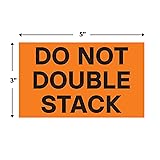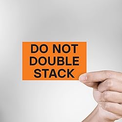 HIGHLY VISIBLE DESIGN | Bright neon orange color ensures the 'Do Not Stack' message is seen immediately. LARGE FORMAT LABELS | Each label measures 3-inch by 5-inch, making it clear and legible even from a distance. BULK QUANTITY | 1000 total labels (2 rolls of 500 labels), providing substantial supply for frequent shipping needs. DURABLE MATERIAL | Made with strong adhesive and resistant material, suitable for various shipping environments. VERSATILE USAGE | Ideal for pallets, boxes, and delicate items that require specific handling instructions.