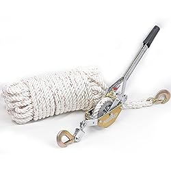 3/4 TON WINCH ROPE: Heavy-duty mini come along winch 3 quarter ton come along hand winch cable puller delivers serious pulling power for construction, home, farms, ranch, fences, tree puller and automotive use. Max horizontal load capacity of 2,600 pounds. WINCH HOOK: Heavy duty puller steel construction for added durability; hooks and gears are zinc plated for a long-lasting life in your garage or workshop when pulling, dragging, lifting, or stretching. Safety latch on all hooks to prevent accidents or slipping off. RATCHETING CABLE COME ALONG: Powerful ratcheting come along pulling system allows for one-handed operation when pulling or winching even the heaviest loads. The winch cable ratchet pulley system length is 15mm thick and 30 meters or 98 feet long. MANUAL ROPE WINCH: Come along hand winch or rope wrench with gear design that locks on for evenly distributed force and easy to gauge notched pulling action for an easy, smooth, and consistent. LEVER ARM: Includes long industrial hand ratchet handle with PVC coated grip for leverage and 2 latching hooks for added safety and versatility when going off road vehicle recovery, pulling fences, logs, stumps, or rocks.