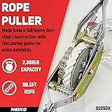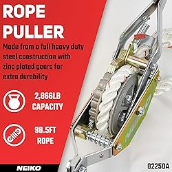 NEIKO 02250A Rope Puller, 3/4-Ton (1,500 lbs) Pulling Capacity, 98Ft, 2 Hook, Heavy Duty Power Cable Come Along Tool with Dual Gears, Hand Winch Cable, Automotive Hoist Winch Puller, Recovery Gear