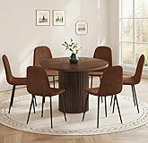 Versatile Dinner Table Set for 6 :The dining room table set including one dining table and 6 chairs, is perfect for any occasion. Use it as a dining set in your kitchen, dining room, or restaurant. It's also ideal as a round dining table for 6 with chairs for your balcony, lounge, or guest room, or even as a game table for the living room, offering versatile solutions for your daily needs Round Dining Table for 6 with Easy Assembly and Low Maintenance:This kitchen table and chairs is made from durable MDF engineered wood,The seamless surface, created from 4 pieces, is easy to assemble with just a few screws. It’s also easy to maintain – water stains and dirt wipe away quickly with a cloth, keeping your dining table looking new for years 6 chair dining table set with Storage:Featuring a unique single pedestal base with a vertical stripe design, this round kitchen table set for 6 adds a stylish touch to any room. The cylindrical legs offer hidden storage space, allowing you to store everyday items. The compact base design ensures the table takes up minimal space, perfect for small dining areas or rooms Comfortable Dining Table Set for 6 with Chairs :The wood dining table set for 6 features chairs with soft, breathable suede cushions for comfort, reinforced metal legs for stability and no wobbling. With adjustable feet for added stability, these chairs fit easily under your table, maximizing space Round Dining Table Set Dimensions:Table 42" L x 42" W x 30"H. Chairs: 16.9" D x 15.8" W x 34.5" H(18" D x 17" W x 32.2" H).This modern dining table set for 6 is perfect for small to medium spaces. We provide a clear installation manual and all of necessary tools, so you can assemble this dining room table set for 6 with chairs quickly and easily