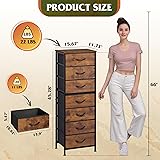 【🏠Compact Size】Fit small space, expand the closet space! 【✨ Ample Storage Dresser】Measures 11.73"D x 15.67"W x 45.28"H, our fabric dressers is equipped with 7 detachable fabric drawers, which facilitate the orderly storage of clothes and daily items, while the woodtop provides display space for artworks and small ornaments, and more life style! 【✨ Durable Quality Material】The drawer surface is composed of three layers of high-quality fiberboard and breathable non-woven fabric, the woodtop is made of P2 grade artificial wood, scratch resistant and easy to clean, the material process and safety are strictly tested by EPA&SGS, health and environmental protection, excellent quality for you and your family to create a peaceful life! 【✨ Premium Details】The dresser organizer is equipped with a smooth slide track and curved handles to ensure that every push and pull is easy and smooth. 4 all-directional adjustable feet, perfectly adapted to all kinds of ground, protecting the floor from scratches, whether it is daily adjustment position or cleaning movement, it can be easily dealt with, saving time and effort! 【✨ Stable Structure Safety Assured】This dressers designed with 15mm thickened metal steel frame with cross support rods for durability. Additional anti-tilt device can easily fix the cabinet to the wall, ensuring the safety of you, your family and pets, and enjoying a convenient life! 【📮Easy Assembly & Excellent Service】Provide detailed assembly guide, screw parts clearly marked, reserved holes and tools, quick assembly within an hour. Our tall dressers is packed in a sturdy package with thick foam and wooden sheeting to prevent damage in transit. Professional after-sales team is ready to use more worry-free!