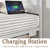 - Bed Frames with Charging Station, LED Lights Bed with Grey Upholstered Headboard, Under Bed Storage, No Box Spring Needed, Noise Free, Easy Assembly