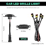 Bright Lighting: These lights feature bright LED lights, which significantly improve visibility in low light conditions. The brightness is sufficient for other drivers to spot your vehicle from a distance, effectively minimizing the risk of collision and ensuring your safety on the road Durable Material: The shell is made of high-strength ABS material with excellent impact resistance, which can effectively resist scratches and abrasions. It has excellent waterproof and dustproof properties, which can keep good performance even on rainy and snowy days Decorative Effect: In addition to its lighting function, this grille light provides a unique decorative effect for your vehicle. The LED light not only offers high brightness but also adds a sense of style and modernity, making your vehicle look more dynamic and personalized Easy Installation: The grille lights feature a plug-and-play design, making installation fast and easy without the need for complex tools or drilling. Simply insert the lights into the pre-set slots on your vehicle's front grille and connect the power wire to complete the setup Applicable models: This grille light fits 2004-2019 F150, F250, F350 and 2013-2018 Ram 1500 models. It can be mounted in the stock grille location, and you can also mount it elsewhere for decoration. Before purchasing, please confirm your vehicle model to ensure compatibility with your car