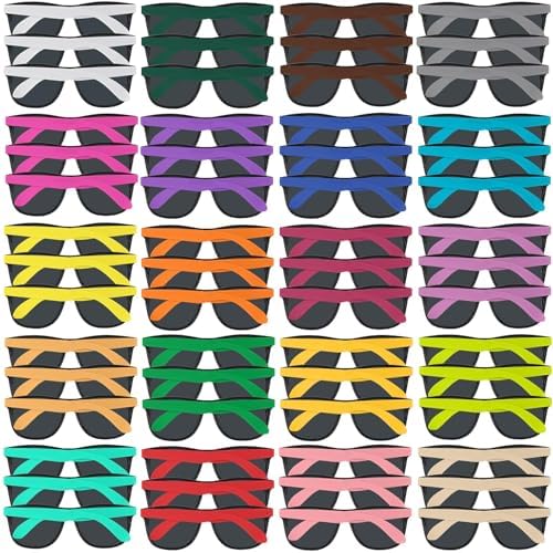 - Value Pack: 20 Neon colors for 100 pack adults kids sunglasses bulk. For family gatherings and large carnival events alike, there are enough quantities and rich colors to choose from, showing their distinctive personalities at any event