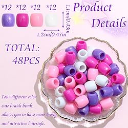 Value Pack:One pack contains 48pcs loc beads in four different color.Smooth glossy surface makes these braids beads perfect for decorative hair.Enough quantity can satisfy your different decorative needs Material:Our braids beads are made of durable plastic material,which makes our product has shiny smooth surface,durable and sturdy,not easily broken.So can be used for a long time Wide Usage:The vibrant color dreadlock beads can be used in the various occasion,such as in parties ,daily life,work, school, holiday,fashion show,photo shoots,etc.They can match your different outfits and highlight appearance Easy to Use:These cute hair accessories are suitable for kids girls hairstyle.These beads are drilled with a large hole,you can easily put your braided hair into it. You can also combine these beads with your favorite charms and beads in your DIY hair jewelry design,which will add some visual effect to your design,making your jewelry more attractive Great gift: These beads accessories are special gift to show your love and care,the loc hair accessories make you look more eye-catching from the crowds, and bring you a different wearing experience
