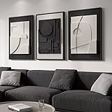[Solid Wood Framed Wall Art]: A set of 3 pieces contemporary 3d textured large framed minimalist abstract wall art, each with a size of 24" W x 36" H. The total size when the 3 pieces are hung is 36" H x 72" W. Each painting comes with a solid wood frame [3D Wall Art]: Our 3D artwork features a multi-layered surface with raised textures that create a bold and dimensional visual effect. Made from durable, moisture-resistant materials, it is easy to maintain while adding depth and artistic character to any space. The refined textured finish interacts beautifully with light and shadow, enhancing its modern, sculptural presence. Because each piece is handcrafted, subtle tone variations may appear under different lighting (cool or warm), and slight color differences may occur across displays. These natural variations are part of the artwork's unique charm [Black White Abstract Wall Art]: This painting combines simple geometric shapes, creating an abstract beauty. Using black and white, it offers a strong color contrast. Fashionable and artistic, it's perfect for decorating living room, hallway, stairwell, dining room, bedroom, study rooms kitchen, and office, adding a modern and artistic touch to any space [Easy to Hang]: Each painting is framed for you. Once you receive these paintings, you can easily hang them up to decorate unique and interesting Spaces [Gifting]: This stylish framed abstract wall art features a modern and elegant design. It's an ideal gifting for new home decorations or housewarmings, combining beauty and artistic flair
