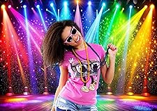 LTLYH 7x5ft Fabric Disco Rainbow Stage 70s 80s 90s Backdrop Vintage Lights Photography Background Rock Music Club Neon Glow Party Decorations Photo Banner 312