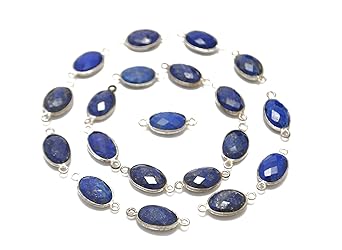 - Enhance your jewelry creations with the rich and captivating beauty of Lapis Lazuli bezel connectors. Each connector features an 8x12mm oval-shaped Lapis Lazuli gemstone, expertly cut in a briolette style to showcase its deep blue hues and natural sparkle. The stones are securely set in a high-quality silver-plated electroplated bezel, combining elegance with lasting durability. Designed with practical double loops, these connectors offer easy and secure attachment to chains, wires, or other jewelry components. Measuring 20mm loop to loop, they provide the perfect size to create stunning custom earrings, necklaces, bracelets, and more. Sold as a set of 4, these Lapis Lazuli bezel connectors are ideal for jewelry makers looking to craft unique, personalized pieces that blend luxury with natural charm. Product Details: - Gemstone: Lapis Lazuli - Metal: Brass - Gemstone Cut: Briolette - Shape: Oval - Stone Size: 8x12mm - Connector Size: 20mm Loop to Loop - Width: 9mm - Stone Setting: Bezel - Plating: Silver - Loops: Double loop - Sold as Pack of 4 Pcs