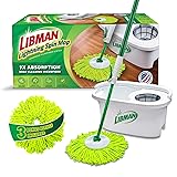 Libman Lightning Spin Mop System Plus 3 Refill Head | Mop and Bucket with Wringer Set | Floor Mop | Spin Mop | Libman Mop | Mops for Floor Cleaning | Hardwood Floor Mop | 4 Total Mop Heads Included