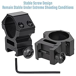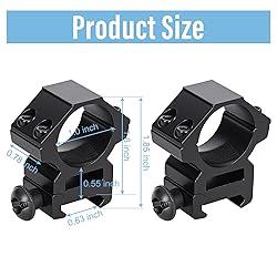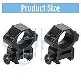 - This scope mount is meticulously designed for 21 millimeter Picatinny/Weaver rails, featuring extremely high versatility. Not only is it lightweight, but also the stable screw design and the built-in rubber strips make this scope mount more stable and safe to use, which is convenient for your outdoor activities. Additionally, we encourage you to share your experiences using our scope rings, as your insights could inspire new features or improvements in future product iterations. We sincerely hope that our products will meet your expectations. May you have a pleasant experience using them! Package Includes: 2 Pcs Scope Rings and 2 Pcs Hex Wrenches Size: Length: 1.6 Inches, Width: 0.78 Inch, Height: 1.85 Inches, Height from Mount Base to The Bottom Of The Scope Ring: 0.6 inch Weight: 3.17 Ounces Color: Black Material: Aluminum Alloy