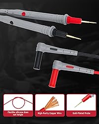 - The KAIWEETS silicone test leads feature a 0.7mm gold-plated probe for precision, CAT III 1000V & CAT IV 600V safety ratings, and a 48-inch temperature-resistant silicone wire for durability. Compatible with most multimeters, these leads are ideal for electricians and repair professionals. Includes 2 test leads, 2 probe covers, and a 3-year warranty for reliable, long-term use.