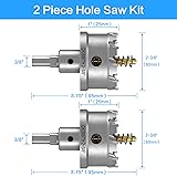 DKIBBITH TCT Hole Saw Set, 2-Pack 2-3/8" (60mm) Heavy Duty Tungsten Carbide Tipped Hole Cutters for Stainless Steel, Copper, Iron, Brass, Plastic with Titanium-Plated Pilot Drill Bits