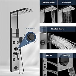 Convenient Shower Niche: The shower panel features 2 shower niche for convenient storage of shower essentials. It provides ample space for shampoo, conditioner and body wash, keeping your shower area neat and organised within easy reach. The unique recessed design allows you to not worry about the risk of dropping your shower essentials. Sturdy and Durable Construction: Crafted from premium stainless steel, our Shower Panel System is built to last. The robust waterway is made with a combination of brass and PVC pipes, ensuring long-lasting durability with minimal risk of leakage. Versatile Shower Modes: Enjoy a variety of shower modes with our full body shower system. From a gentle rain shower to a handheld shower, from invigorating body jets to a relaxing tub spout, you can switch between different modes to suit your mood and preferences. Certified Quality: Shower panel tower is Plumbing certified, guaranteeing its superior quality and performance. Rest assured that you are investing in a reliable and high-quality product that meets the highest standards in the industry. Enjoy the peace of mind that comes with choosing a product that is backed by a trusted brand. LOWER Water Pressure: If the water pressure has decreased, please refer to the manual to clean the water impurities in the filter, which is the main cause of the decrease in water pressure. Feel free to contact us for assistance.