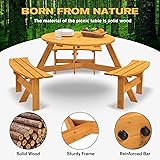 QUAWIP 6-Person Circular Outdoor Wooden Picnic Table for Patio, Backyard, Garden, DIY w/ 3 Built-in Benches, 1720lb Capacity - Natural