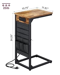 【MULTI-LAYER STORAGE BAG】---This table size is 15.7“D x 11.8”W x 24.3"H. Small bag for remote control, cell phone, charger, medium bag for notepad, double-layer large bag for tablet, magazine, newspaper, etc., easy to store and save space. 【END TABLE WITH FAST-CHARGING STATION】---This side table is equipped with 2 AC, 1 USB + 1 TYPE-C (5V 3A) fast-charging ports, the power cord is 5 feet long, convenient to charge your phone, computer, ipad. 【STRONG CONSTRUCTION】---Sturdy square steel tube, stable structure, not only saves space, but also good stability, and the product is equipped with 4 adjustable feet to increase the stability of the table, and at the same time to prevent the product from scratching the floor. 【SUITABLE FOR SMALL SPACES】---C-shaped design, it can be comfortably installed in small spaces, and can easily slide under the sofa or bed for your convenience. 【EASY TO ASSEMBLE】---Simple structure, detailed instructions, clear product number, so you can simply and quickly put the product in place. 【MULTI-SCENE APPLICATION】---Suitable for sofa table, bedside table, TV tray table, laptop table, etc., applicable to the bedroom, living room scenes, the desktop can be placed on the phone, computer, coffee cups, lamps, etc.