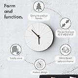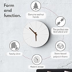 - STEP UP' YOUR HOME DECOR – Stay on schedule with your Scandinavian inspired wall clock from Driini. Your unique ‘step’ clock makes itself at home with urban design and unobtrusively silent analog operation. FITS IN ANYWHERE – Display your cool and stylish wall clock in your office, bedroom, living room or anywhere else you desire! At 10.5 inches across, it’s large enough to be easily seen, yet small enough to look at home on any wall. PREMIUM QUALITY – This elegant clock is crafted from a unique stone-based polyresin, giving it a sleek matte black finish with a sturdy, concrete-like weight and feel. Authentic pinewood hands complement and contrast the clocks black face. The clock mechanism is upgraded to a high-end unit that is a totally silent, non-ticking sweep movement. SIMPLE SETUP – Insert a single AA battery in the back of the clock (not included) and turn the setting knob to your desired time. Watch as the silent wooden hands start to glide through the hours—that’s it! DRIINI MEANS DESIGN – Choose us for unique aesthetics, minimalist simplicity, and no-nonsense function. Your analog polyresin wall clock is backed by our commitment to your complete satisfaction.