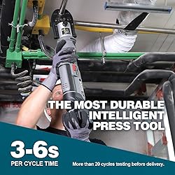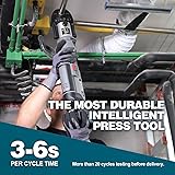 - 【Pressing Range】 pro press tool for copper pipe hydraulically pressing Integrating cutting-edge technology, equipped with professional pressing jaws of various specifications from 1/2”-2”【Efficient Electro-hydraulic Connection】 ZUPPER Pro press tool equipped with a leading fully enclosed electro-hydraulic system, the power transmission is rapid and efficient, completing strong crimping in 3-6seconds【Made of High-quality Materials】 It is manufactured using sturdy, durable, and high-quality raw materials. The outer shell is made of high-strength wear-resistant and corrosion-resistant materials, which can resist various collisions, friction, and chemical corrosion that may occur in different environments during daily use【One Handed Convenient Control】 Optimized design that combines ergonomics and mechanical control principles, allowing for flexible opening and closing of jaws with one hand and precise control of the crimping process. 【Durable and Worry Free】The LED display screen presents real-time battery life and working status, paired with 180 ° rotating gun barrel design, ensuring safe and smooth use.
