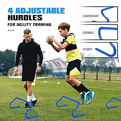 - Unleash Your Athletic Potential with Versatile Speed Training Equipment Our comprehensive sports training equipment is designed to meet the needs of athletes and coaches of all levels. Whether you're into football, basketball, soccer, tennis, or any other sport, this set has you covered. Customize Your Training The versatile equipment allows you to tailor your drills to focus on specific skills such as speed, agility, coordination, footwork, balance, and explosiveness. Design drills that fit your individual needs and goals. Multi-Tasking Training Hurdles Our track hurdles are perfect for improving speed, agility, coordination, instantaneous power, and building leg muscles. Suitable for a wide range of sports including soccer, volleyball, basketball, baseball, football, track and field, lacrosse, and field hockey. Agility Ladder Maximize your acceleration, rhythm, balance, leg strength, overall body control, and reaction time with our agility ladder set. Jump Rope The jump rope included in our Soccer Training Equipment set is a fantastic tool for improving aerobic endurance, stamina, and speed. It's a full-body workout that strengthens muscles and improves bone density. Regular use targets various muscle groups and promotes better bone health, leading to a stronger and more resilient body. Train Anywhere, Anytime Portable and easy to set up, this speed training set allows you to train wherever and whenever you want. Whether it's at home, in the park, or at the gym, there are no limits to improving your performance. Products Specification 20ft Football Ladder with 12 rungs and 4 metal pegs to secure the training ladder. 12-piece high visibility colored Soccer Cones. Running Parachute with adjustable belt. 4 Agility Hurdles made of high-quality PP material. Adjustable Jump Rope. A Drill Poster serving as a perfect roadmap for ideal configurations for various footwork drills, football, soccer, basketball training, and obstacle training. A portable drawstring carry bag for easy transportation of all the football equipment.