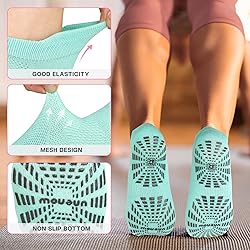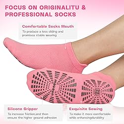 【COMFORTABLE SOCKS】Made of 82% cotton, 15% polyester and 3% spandex. Our athletic ankle grip socks provide premium quality combed cotton and 100% silicone gel grips on the bottom. Soft, breathable and more flexible. Moisture wicking performance keeps your feet dry and comfortable without sweaty feeling. Suitable for all seasons. 【NON-SLIP GRIP DESIGN】Featured non slip dots on the bottom of the socks. Pilates barre socks offer better grip for improved stability & balance so that you can stay safe, avoid injuries and have better control of your body movements, even without a mat. Grips are made of soft and flexible silicone; they will not crack no matter how much you pull and guarantees a firm grip which allows you to push yourself when it really matters. 【MULTI-USAGE】One Size fits Women’s shoe size 6.5-12. No matter what kind of exercise you do, these adult grippy socks for women are perfect for Yoga, Pilates, Bikram, Barre, Ballet, Trampoline, Travel, Studio, Gym, Dance and more. Also ideal for Hospital, Rehab, Physiotherapy, Elderly Care, Pregnancy and more to prevent falls from stairs, or the floor. If you're looking for these socks, you can stop the search and buy our ankle socks, we are confident that you will love these non slip socks. 【STAY CLEAN AND COVERED】: Home & hospital socks provide a barrier between your foot and the floor, mat, and equipment, keeping your feet dry without bad odor. Fully covered design socks with cushion protect your feet from dirt and blisters. 【EXCELLENT GIFT CHOICE】Grip Socks for women make a great gift for the pregnant, the elderly, the patients or a new mother. Anyone would appreciate it as the socks are convenient to carry and wash. Ideal for them stay in the hospital, and also when they are getting up in the middle of the night onto cold floors, or spending most of their days at home with the baby.