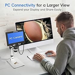 50-1200X Magnification & 7" HD Screen: Experience precise observation with 50-1200X digital magnification (dependent on screen size and distance). This LCD microscope features a 7-inch built-in LCD screen, offering a larger and clearer view than smaller 4.3" models. Perfect for inspecting coins, circuit boards, plant textures, skin details, and more. 12MP HD Imaging & 1080P Video Recording: Capture stunning 12MP photos and record smooth 1080P Full HD videos at 30fps (memory card not included). Whether used for research, technical work, or educational demonstrations, this digital microscope allows you to share real-time discoveries, making it an excellent tool for documenting projects and hobbies. Easy Focus & Ergonomic Metal Stand: Adjusting the focus wheel makes it easy to get a clear image. The sturdy metal stand minimizes vibrations, ensures stability, and adapts to any viewing angle. This reduces eye and neck strain during prolonged use, making it a reliable soldering microscope for detailed tasks like circuit board repairs. 8 LED Fill Lights for Optimal Clarity: Illuminate subjects evenly with 8 adjustable LED lights, enhancing visibility in low-light conditions. Whether analyzing opaque materials or using it as a coin microscope, this device delivers vivid, distortion-free results with exceptional clarity. Windows Compatibility & Versatile Use: Connect directly to computers via USB for expanded screen viewing and sharing. Designed for hobbyists, engineers, and educators, this microscope for adults excels in coin inspection, circuit board repair, and close observation of plants, stamens, or miniature objects, making it a must-have tool for precision tasks.