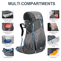 【High-Quality Hiking Backpack】Made of high-quality tear Polyester and nylon fabric material, this camping backpack water-resistant, tear resistant, wear resistant, suitable for any outdoor environment. All of the backpack's stress points and shoulder straps are reinforced with lap-knots to ensure long lasting durability. Come with extra waterproof rain cover pouch on the bottom pouch, prevent the water and dust into the backpack, protect your valuables from heavy rain and keep everything dry. 【Large Capacity Camping Backpack 】This internal frame backpack size is 31 x 14.5 x 8.6 inches, with 55L large capacity but only 3 Ibs weight, it's enough for 3-5 days travel or outdoor adventure. With a multi-compartment design that includes 1 main compartment, 1 top pocket, 2 side pockets, 1 front pocket and 2 zipper waist pocket. External extension system with several practical compression straps and attachment points to carry sleeping bag, tent, trekking poles,ice axes, climbing ropes, etc. 【Ergonomic Breathable Technology】This lightweight & comfortable hiker backpack is specially designed for outdoor enthusiasts. Suspended three-dimensional breathable back system that keeps your back comfortable and relaxed during travel. Breathable mesh on the back fabric can reduce sweating for extra comfort. Built-in elastic steel frame in the back provide superior structural support, evenly distributes weight and reduces back and shoulder stress, gives you more comfortable experience. 【3L Leak-proof Water Bladder】The IX INOXTO Hiking Hydration Backpack comes with a 3 liter hydration water bladder. A switch valve and a cover cap make double leak-proof. Large opening allows quick filling of water and ice and it is easy to clean, the water line (47"length,0.4"diameter) provides a wholesome flow for easy drinking, the water temperature is range -20~+50℃. With this large-capacity hydration bladder, you can keep hydrated and active all day throughout your adventure. 【Practical Design Travel Daypack】This 55l climbing backpack has a zippered entry on the side for easy access to the main compartment. Multi-position torso adjustment fit men and women of all sizes. S/M/L 3-position adjustable S shoulder straps allow the backpack to perfectly fit your body and prevent it from shifting. Ideal for daily use and multi-day trips, vacations, travel, hiking, hunting, camping and shopping! Meets most airline size requirements, perfect backpack for outdoor activities!