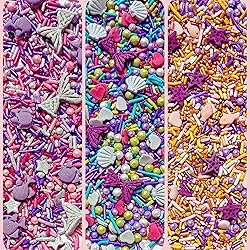 - Transform your baked creations into magical undersea wonderlands with this enchanting 5-piece sprinkle mix set. Each blend features a carefully curated combination of pastel-colored sprinkles in various shapes and sizes, creating dreamy underwater-inspired designs. Perfect for decorating cakes, cupcakes, cookies, and other sweet treats, these decorative sprinkles come in convenient bottles with screw-top lids for easy storage and application. The set includes five different mixes featuring soft pinks, blues, purples, and other delicate hues that will add whimsical charm to your confectionery masterpieces. Whether you're creating themed birthday cakes, special occasion desserts, or just want to add a touch of whimsy to your everyday baking, these sprinkle blends will help you achieve professional-looking results. The sprinkles maintain their vibrant colors and shapes, making them ideal for creating eye-catching designs that will impress your guests.