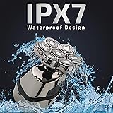 ALL-IN-ONE 5-IN-1 GROOMING KIT: Includes head shaver for men, bald head shaver, hair shaver for men, nose hair trimmer, facial cleaning brush, facial massage brush, and 3 comb attachments. Suitable for head shavers for bald men, scalp shavers, and full body shaver for men. PRECISION 7D FLOATING SHAVING HEAD: Advanced 7D floating head shaver replacement adapts to every curve for smooth bald head shaving, skull shavers for men, and head razors for bald men, minimizing irritation. WET & DRY SHAVING FLEXIBILITY: Rated IPX7 waterproof shaver, safe for wet shavers for men or dry use. Ideal for head and face shaver for men, mens hair trimmers for bald head, and full body shaving, even in the shower or while traveling. LED DISPLAY & CORDLESS RECHARGEABLE: Digital display shows remaining battery life. The cordless head shavers for bald men and mens shavers electric cordless rechargeable design is portable and suitable for everyday grooming. EASY TO CLEAN & TRAVEL-FRIENDLY: Detachable heads make cleaning simple. Lightweight and ergonomic, suitable for balding clippers for men, electric head shavers for men, head shaving razor, and bald head care, providing convenience and versatility.