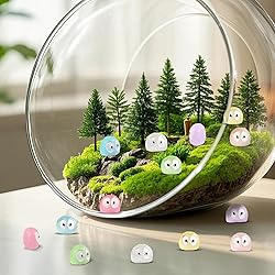PACKAGE CONTAINS: You will receive 100pcs cute tree elves in eight random colors: pink, light pink, white, blue, green, purple, yellow and orange, measuring approximately 0.35*0.43 in/0.89*1.1 cm. These exquisite tree elves are perfect for your various decoration needs, and you can share with your friends. PREMIUM MATERIAL: Our mini tree elves are made of high-quality resin. They are tiny, lightweight, glossy, and easy to carry. You can easily put them in your pocket or backpack. They can be stored for a long time and reused, giving you a good decoration experience. LUMINOUS DESIGN: These glowing ghosts look cute and have a unique glowing effect, they need to absorb sunlight or light during the day, the stronger the UV, the brighter they glow in the dark. So, it can light up your room even at night. PERFECT DECORATION: Mini resin tree elves can be used as decorations for room, bonsai, farm animals in dioramas, succulents, cakes, patios, terrariums, mini fairy gardens, miniature moss landscape to add color and personality to your outdoor setting and get closer to nature. SURPRISING GIFT: In addition to being a decoration, you can also give the glowing briquettes to children and friends as a gift on a daily, birthday, holiday or celebration of theme party, which is sure to bring them different fun and surprise, while increasing your relationship or friendship.